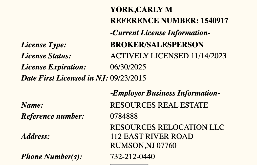 As a Realtor, Carly won the prestigious New Jersey RealtorsĀ® Circle of Excellence Sales Award for 2017, 2018, 2019, 2021, and 2022. She is still a proud Broker-Associate with Resources Real Estate in Monmouth County, NJ. After helping clients through well over one hundred real estate transactions in her nine-year career, she has experience in both property marketing, and client services marketing. She earn the "Seller Representative Specialist" designation, as well as the "Real Estate Negotiation Expert" designation, both from the National Association of Realtors.