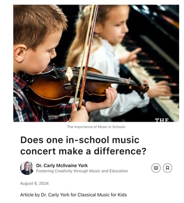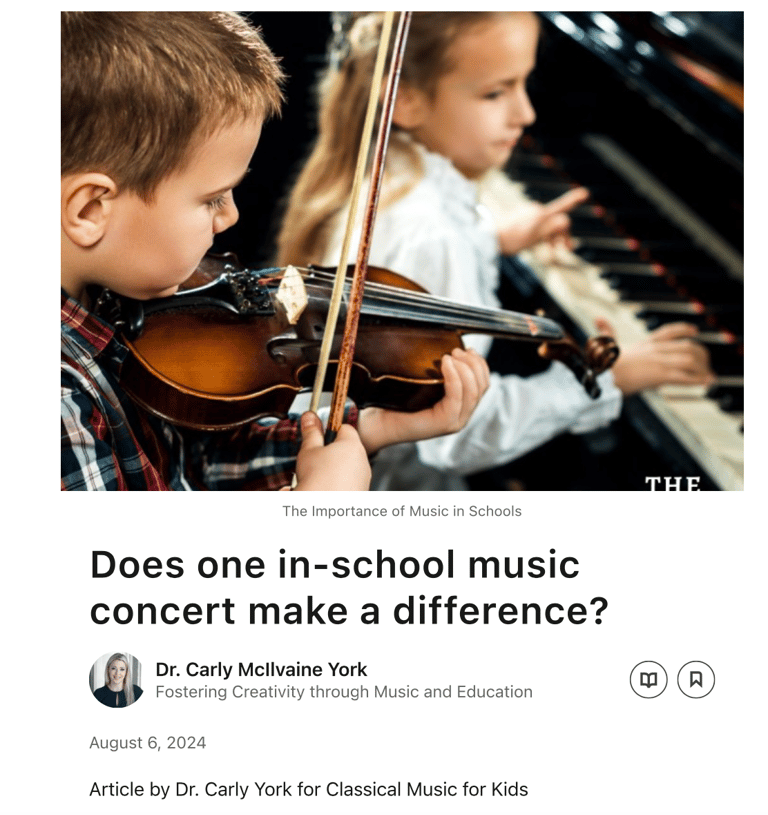 Carly also writes Classical Music Program notes for concerts, particularly for the American Classical Orchestra in New York City. She regularly writes about Music Education on LinkedIn and the American Classical Orchestra blog.